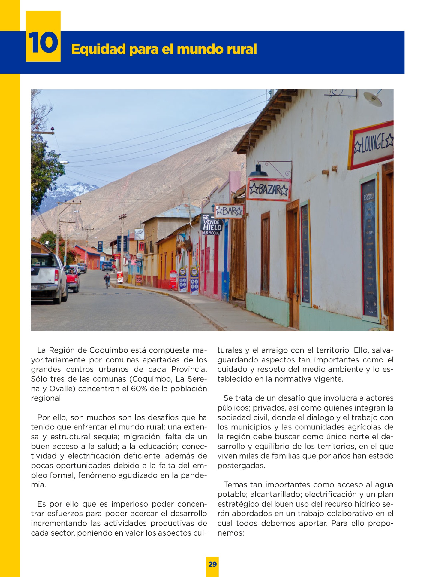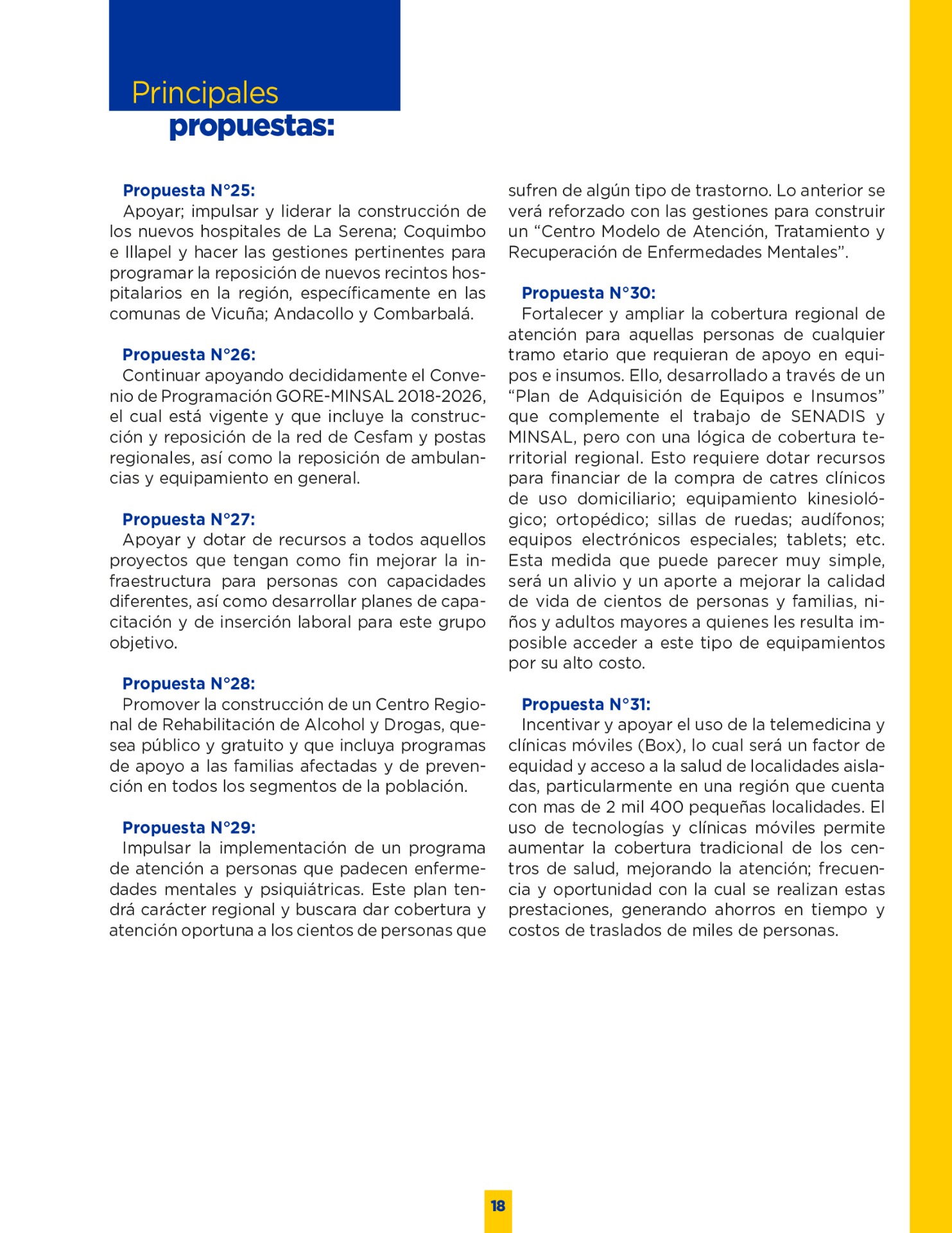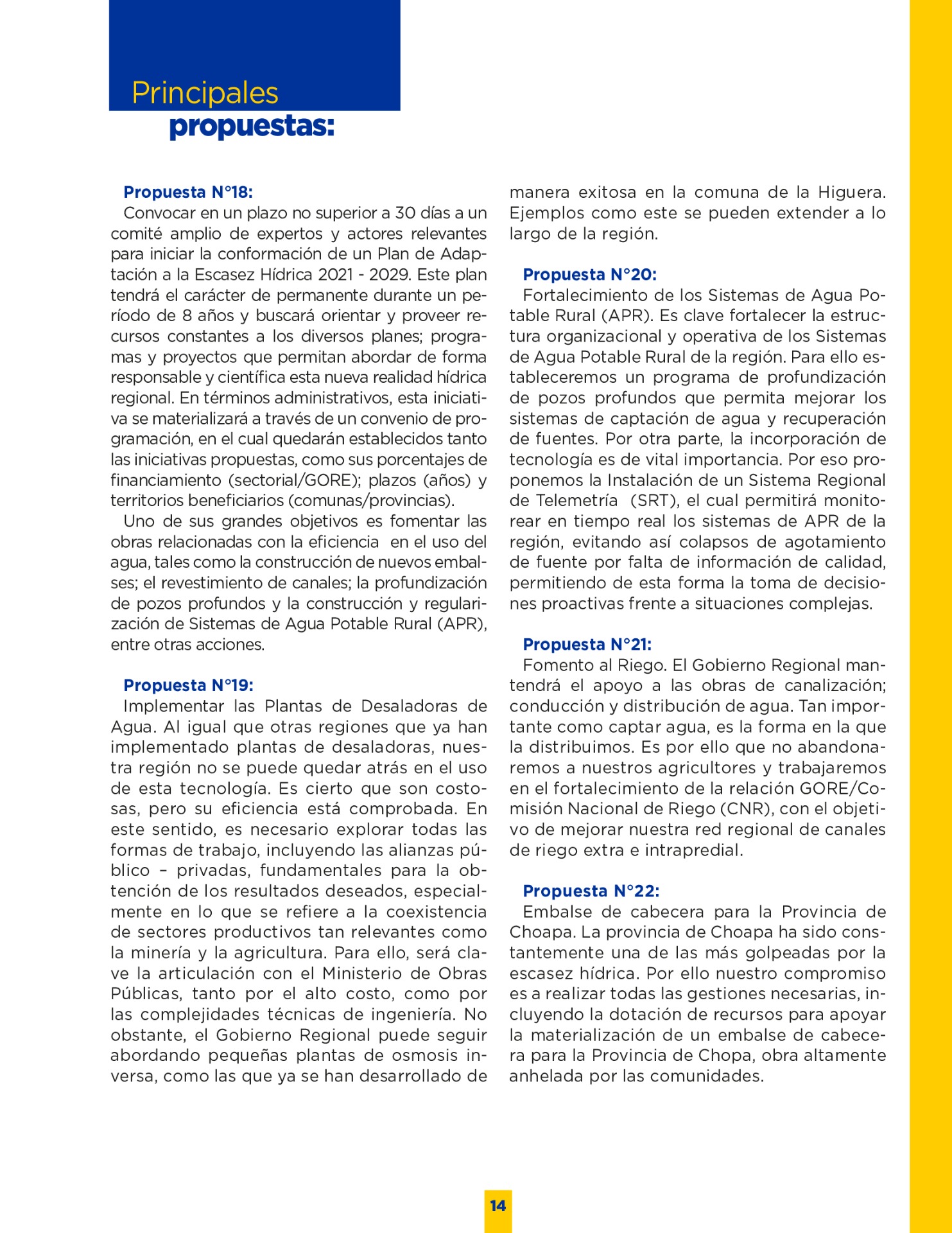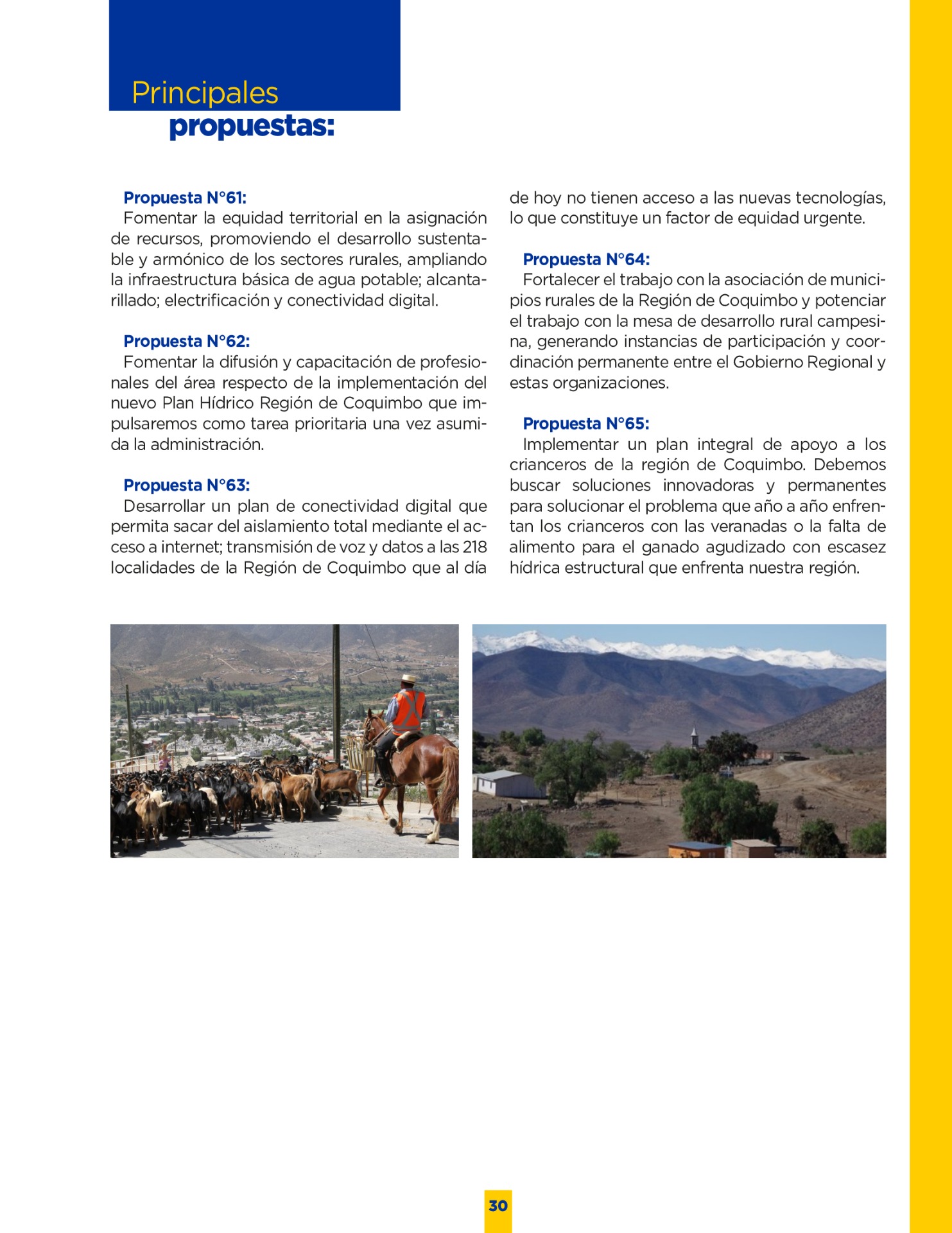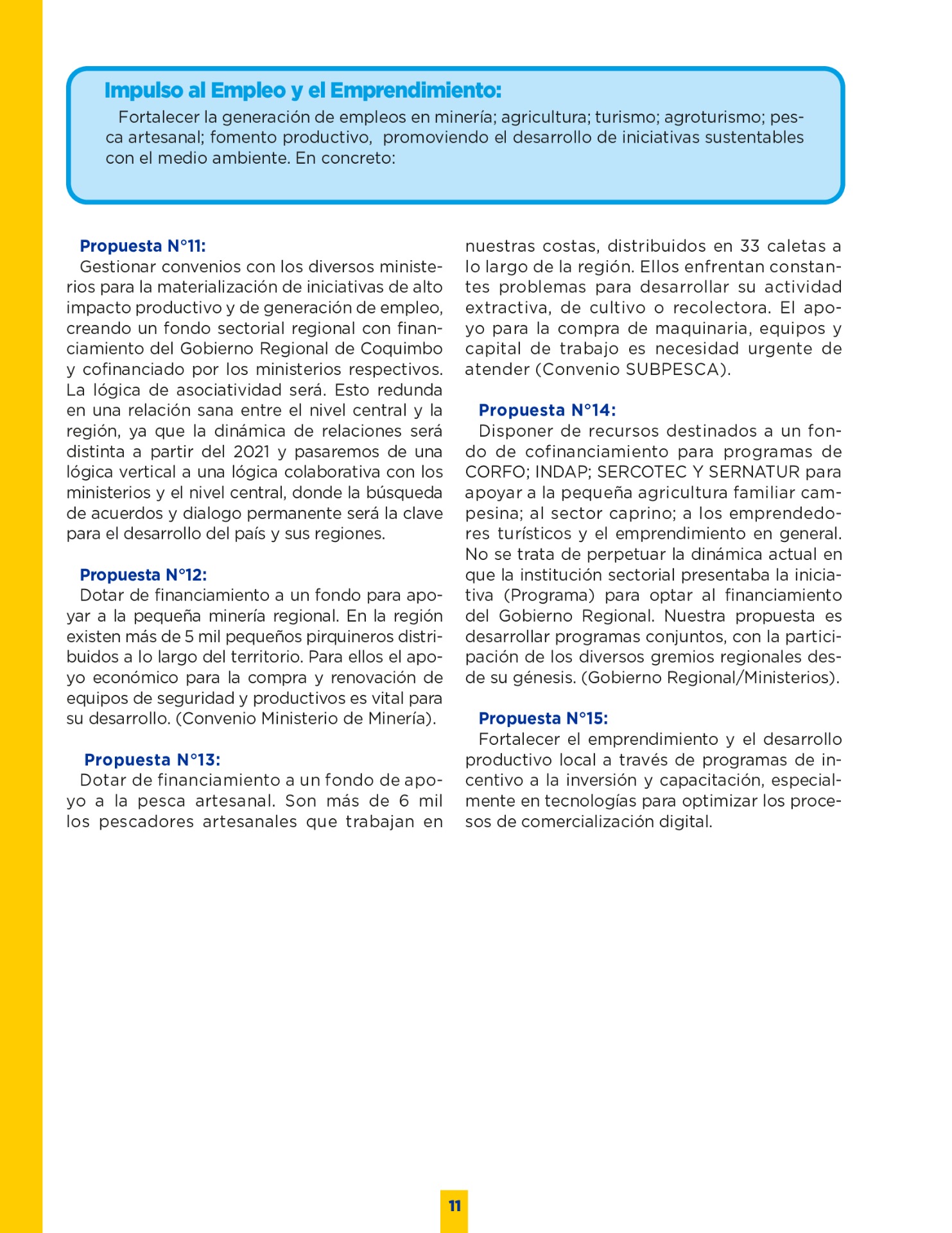 Son muchos los desafíos que tenemos por delante. Sin duda vivimos años difíciles. Pero tengo la convicción que con empeño; trabajo y eficiencia podremos lograr que nuestro territorio se transforme en una región más Desarrollada; equitativa y moderna. Los invito a leer mi programa de gobierno. Es un documento ciudadano, con un claro y sincero sello social, que recoge las inquietudes y prioridades que ustedes mismos me entregaron en nuestro incansable recorrido.