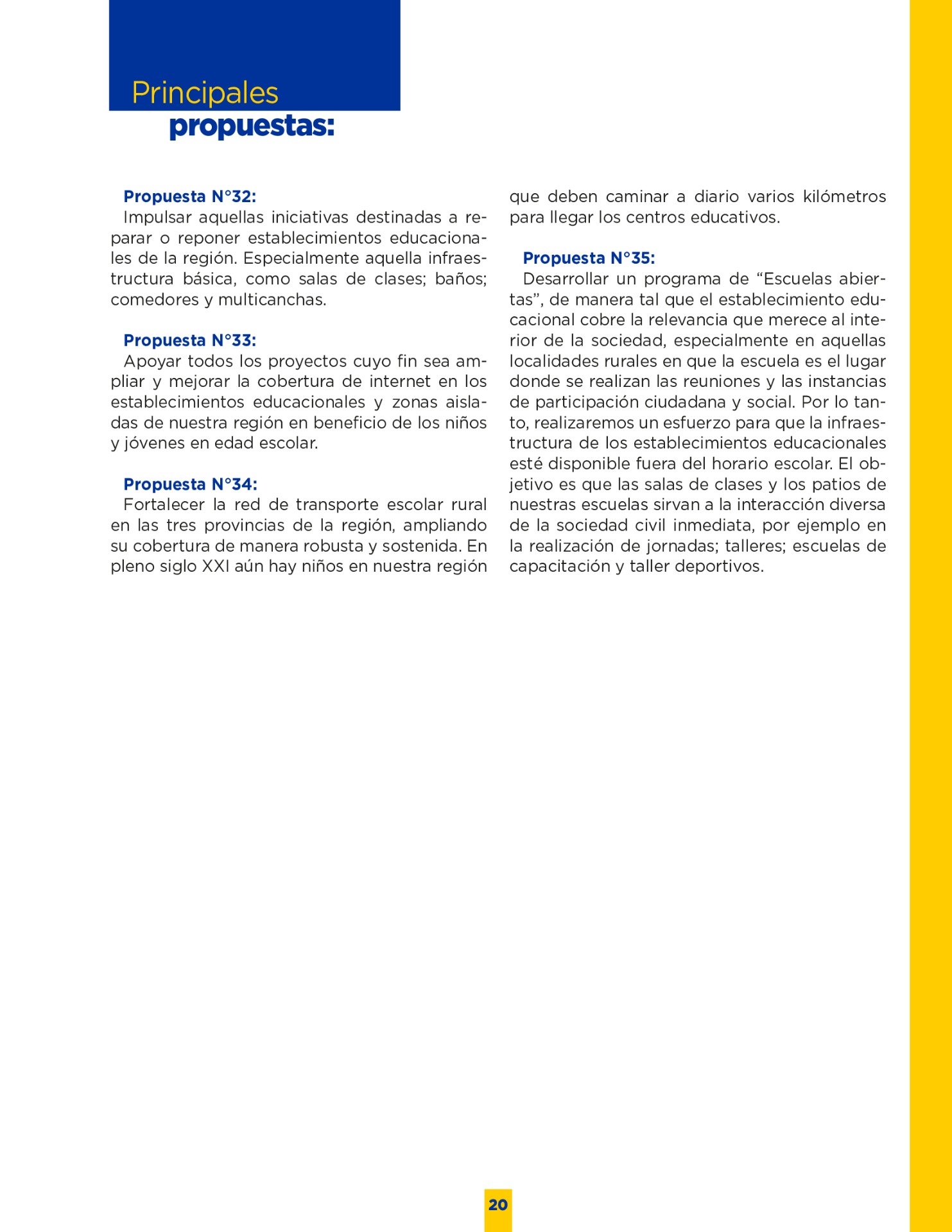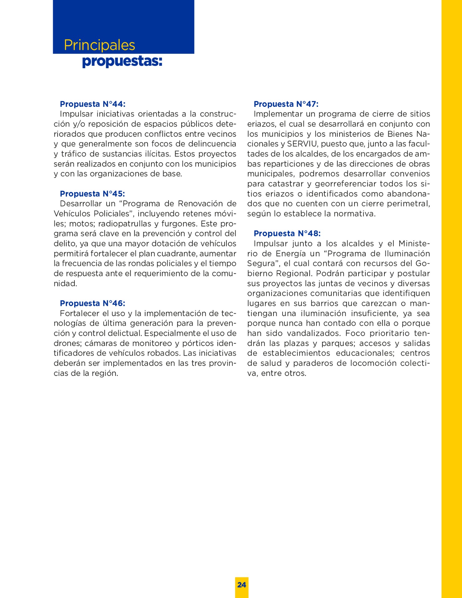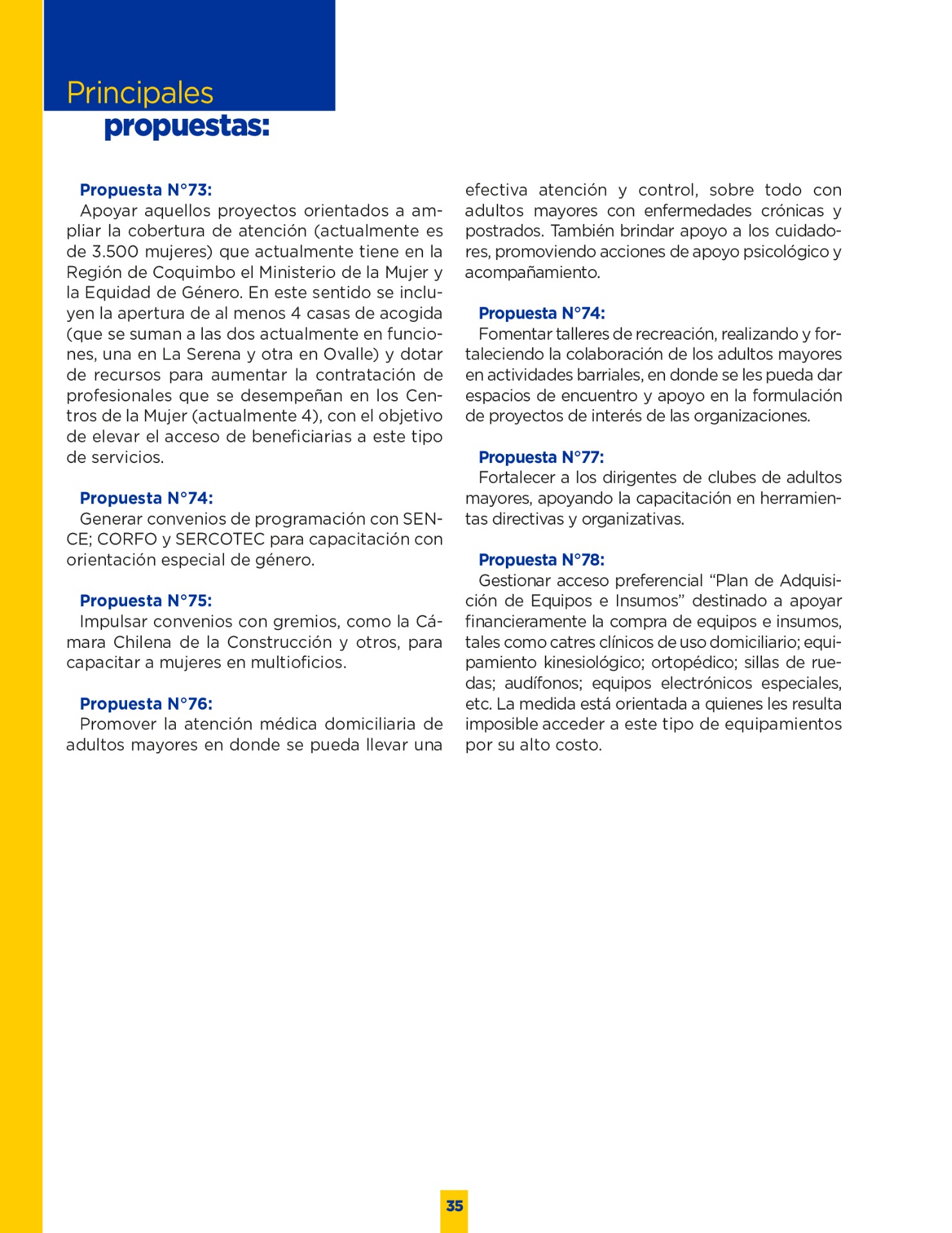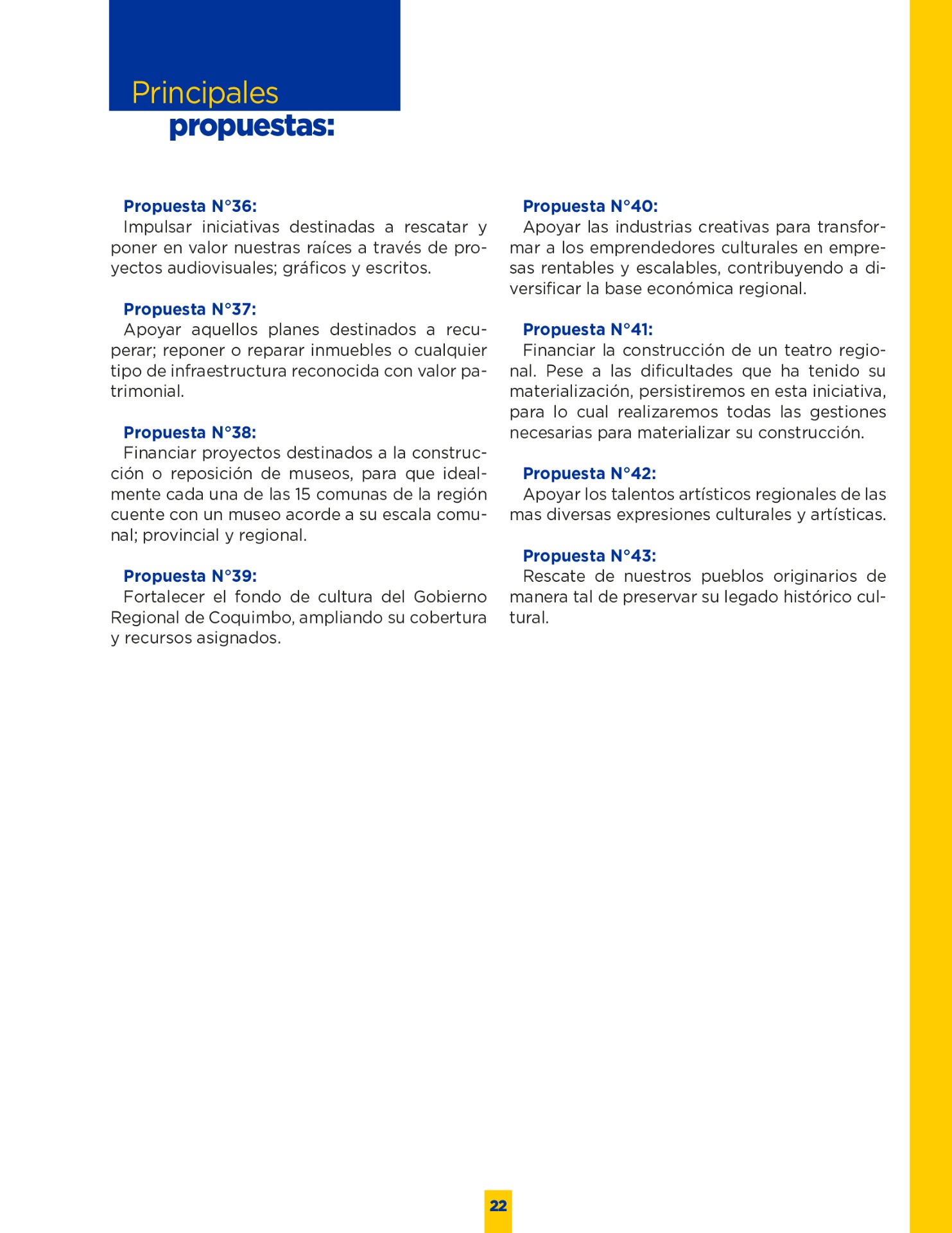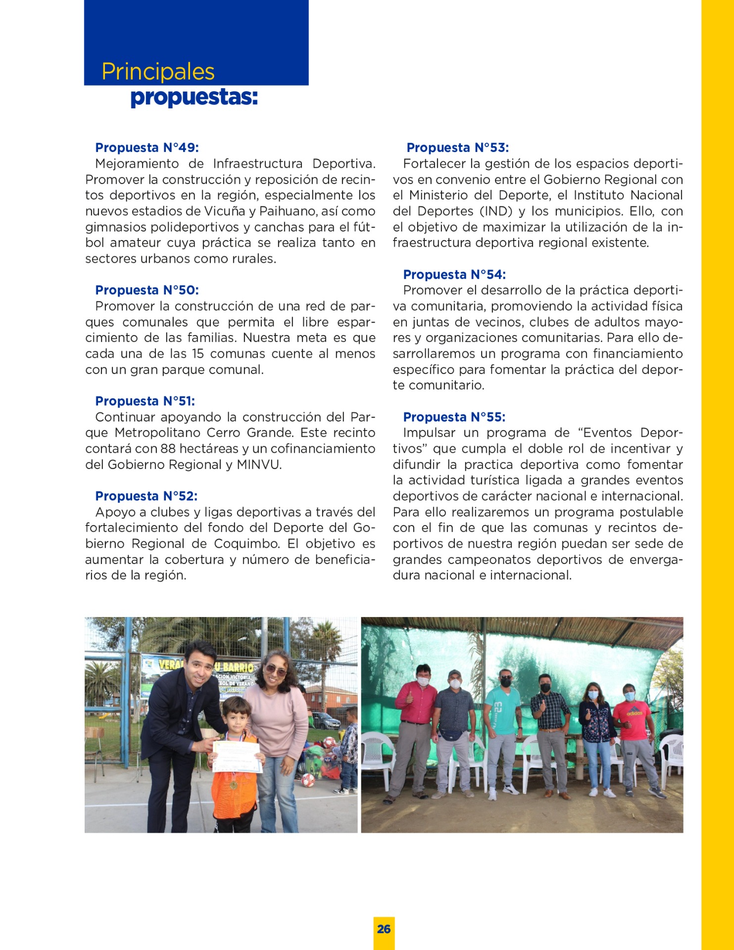 Son muchos los desafíos que tenemos por delante. Sin duda vivimos años difíciles. Pero tengo la convicción que con empeño; trabajo y eficiencia podremos lograr que nuestro territorio se transforme en una región más Desarrollada; equitativa y moderna. Los invito a leer mi programa de gobierno. Es un documento ciudadano, con un claro y sincero sello social, que recoge las inquietudes y prioridades que ustedes mismos me entregaron en nuestro incansable recorrido.